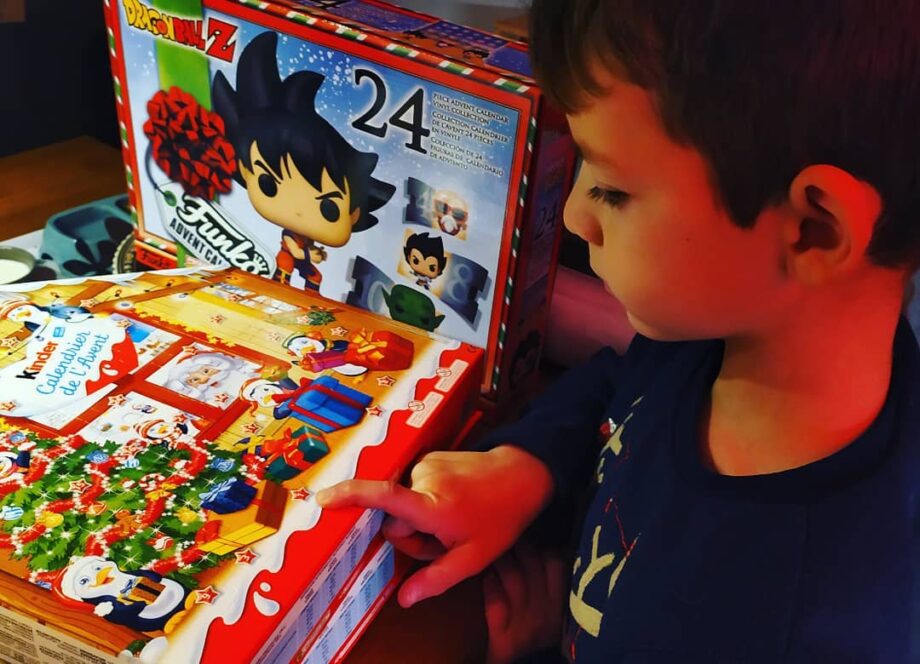 Enfin le 1er décembre… Léandre attendait avec impatience d’ouvrir son calendrier !!! Ils en ont chacun un Kinder & Marceau en a un en plus avec des mini pops Dragon Ball Z.
