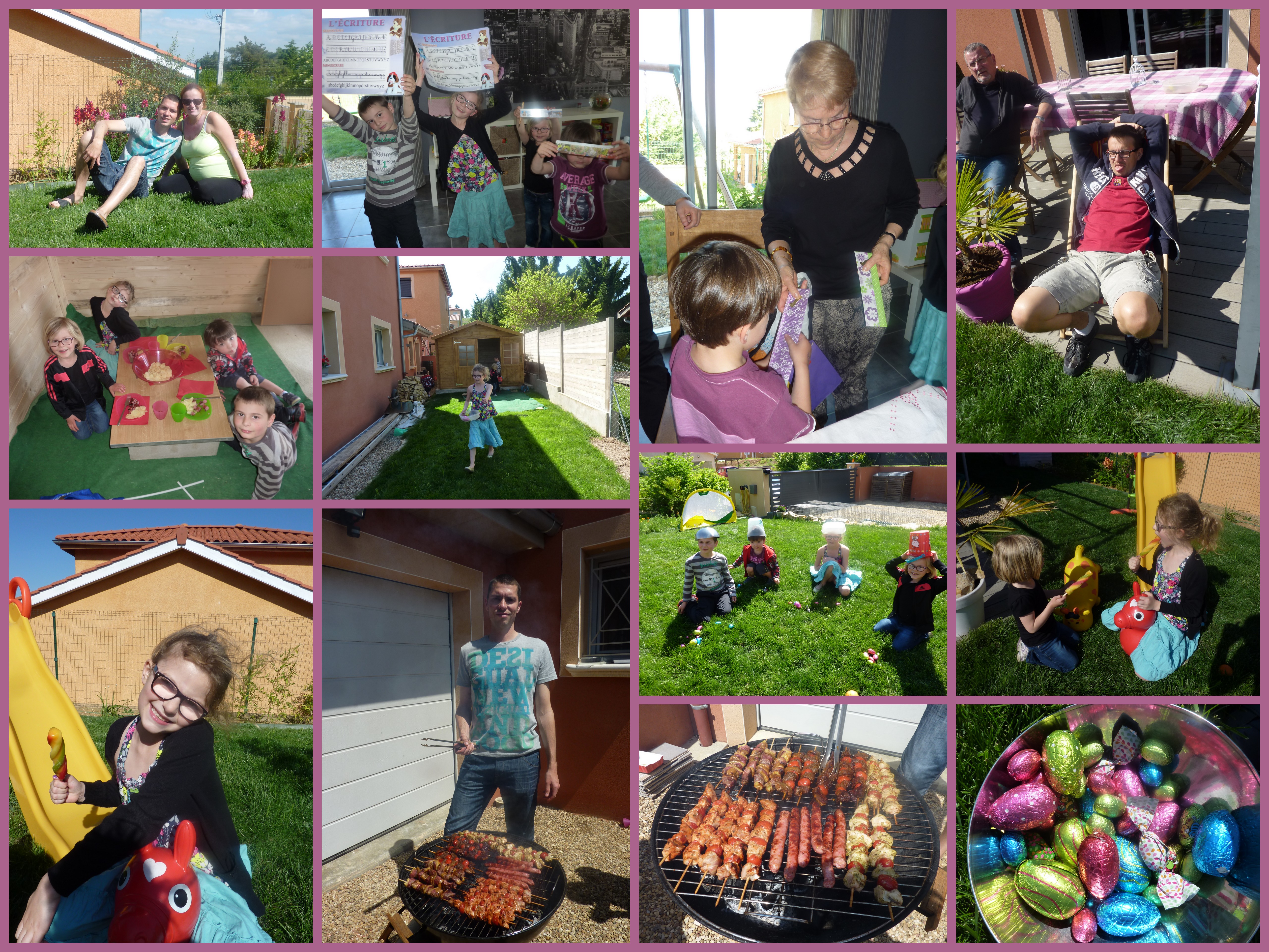 Les enfants ont mangé entre eux, dans la cabane, encore vide ! L’après-midi, avec qq oeufs qu’il restait, ils ont fait une petite chasse aux oeufs et on est allés se balader un peu dans l’aprem, sous le soleil mais avec pas mal de vent.