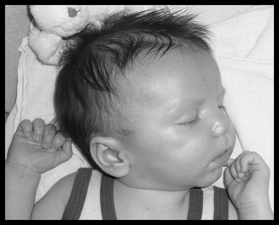 Et je vais très bien, je suis un petit ange, et je commence à sourire un peu, je m’éveille petit à petit.