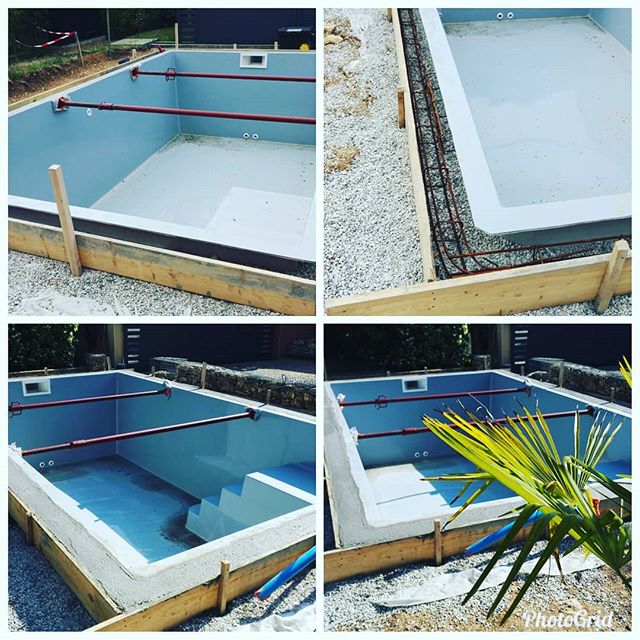 Notre piscine #9 Ceinture béton aujourd’hui autour de la piscine. Quelques jours de séchage… Puis il restera le raccordement de toute la machinerie, nettoyage et remplissage de la piscine. D’ici quelques jours Franck pourra commencera terrasse avec parpaings (on en a déchargé 120 à 2 aujourd’hui… J’aurai pas eu besoin de ma séance de sport ce matin !!!) puis lambourdes et lames de terrasse ! A suivre ! Biz. Adeline