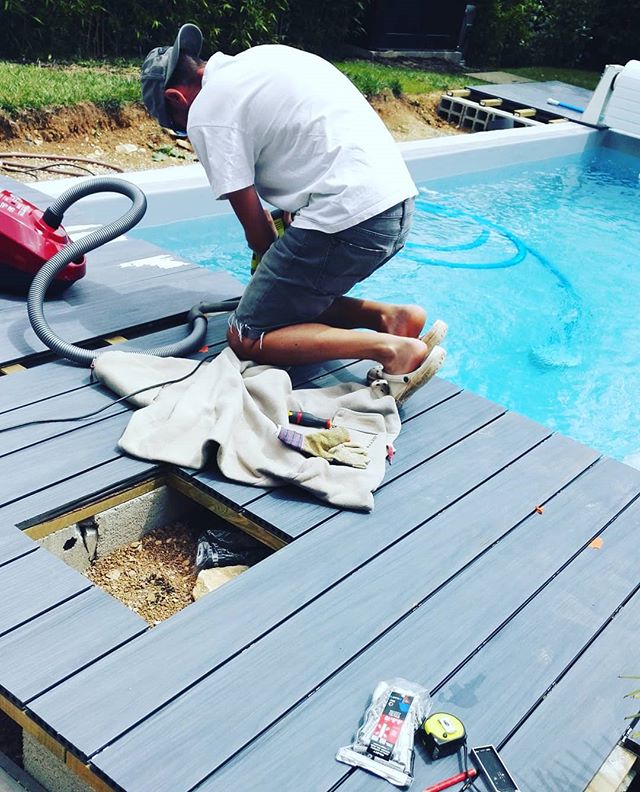 Terrasse en cours par mon terrassier préféré !!! Projet un peu long car il veut y intégrer les palmiers et de l’éclairage !