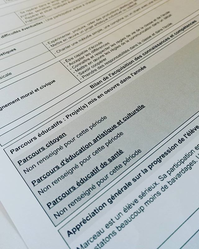 Un bon bulletin aussi pour Marceau en ce 1er trimestre de ce2. Tous les objectifs dans toutes les matières sont atteints. Et son appréciation est : « Marceau est un élève sérieux. Sa participation en classe est régulière et pertinente. Son comportement s’est amélioré et nous constatons beaucoup moins de bavardages. Un bon premier trimestre. La …