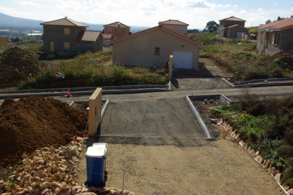Pour ceux qui ont déjà eu « la chance » de pratiquer le chemin d’accès de notre lotissement, je vous annonce qu’il y a du changement … le 4×4 n’est plus nécessaire (tant mieux, on avait pas investi !) & on commence à voir le bout de ce chemin boueux, caillouteux, raviné… Les trottoirs sont en cours …