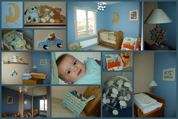 Puisqu’on parle beaucoup de Marceau, voici sa chambre !!! Avec ses nouvelles portes de placard vitrées, attention !!! Même parquet dans sa chambre que partout à l’étage, 2murs beige / 2 murs « vieux bleu », qui rend différemment en photo je trouve ! Il a récupéré le lit et la commode de Louise & a eu …